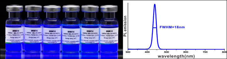 我们可根据客户需求,提供不同表面基团、溶剂、浓度、400-460nm间任一发射波长的CdS/ZnS 量子点。
