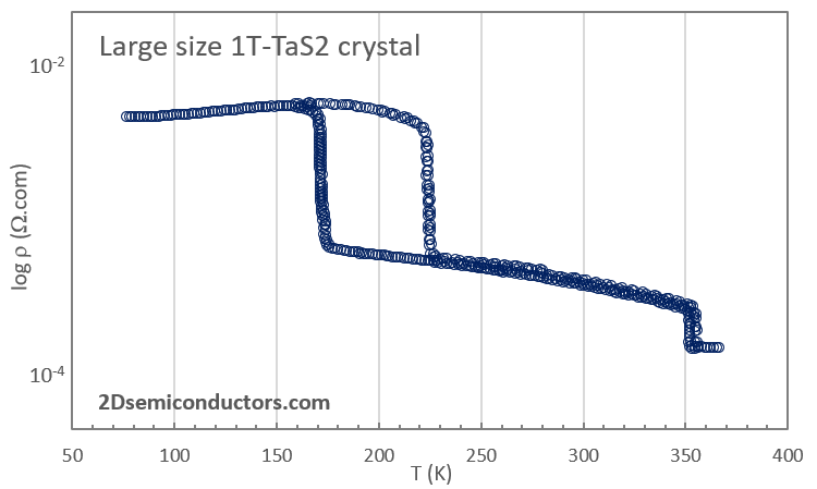 Single crystal 1Tphase TaS₂ (Tantalum disulfide) crystals come with guaranteed charge density wave (CDW) behavior. These crystals are grown using flux zone technique which is superior to commonly used chemical vapor transport (CVT) taht produces dirty and contaminated crystals. Each growth takes close to three months to provide you perfected crystals. Each crystal is highly crystalline, perfectly oriented in 0001 direction, and is ready to to exfoliate. Importantly, 1T-TaS2 crystals are environmentally stable, and thus can be used for many years without any concern over air interaction.