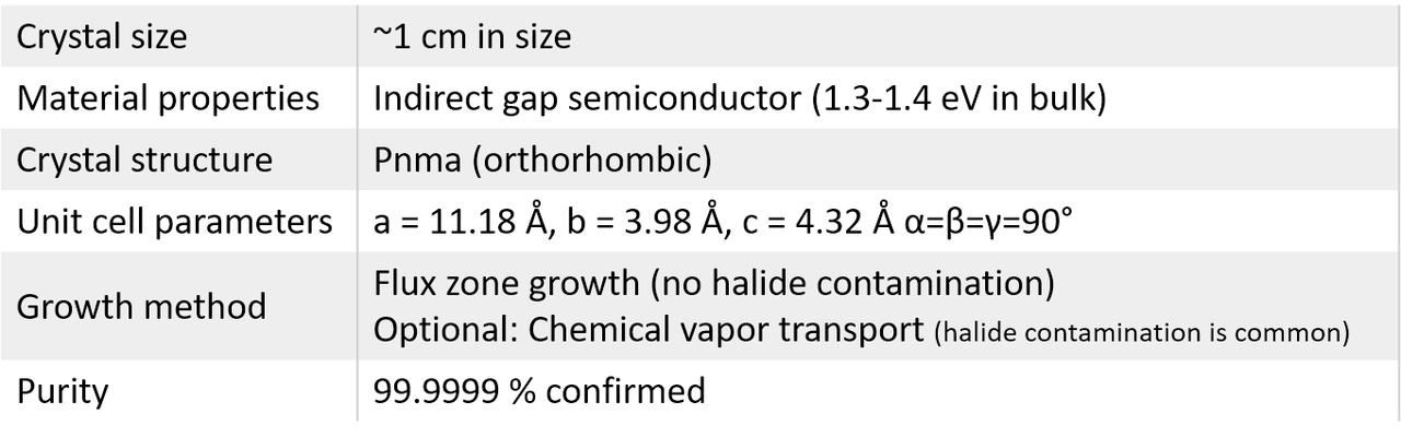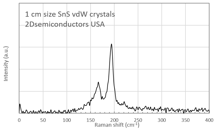Our single crystal SnS (Tin sulfide) crystals come with guaranteed optical, electronic, and structural anisotropy. They are developed at our facilities using state-of-art flux zone techniques. hey are developed at our facilities using state-of-art flux zone techniques. Each growth takes close to three months to provide you perfected crystals that does not contain any transport agent (halide) impurities. In contrast to commonly used chemical vapor transport (CVT) technique, flux grown crystals are well known for their structural perfection and electronic/optical performance. Each crystal is highly crystalline, oriented in 0001 direction, and easy to exfoliate. Our R&D staff takes characterization data set in each sample piece to ensure structural, optical, and electronic consistency.