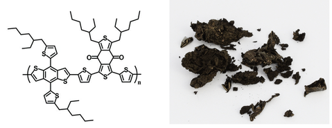 Chemical structure and product image of PBDB-T (PCE12); CAS No. 145929-80-4, Chemical formula: (C68H78O2S8)n.