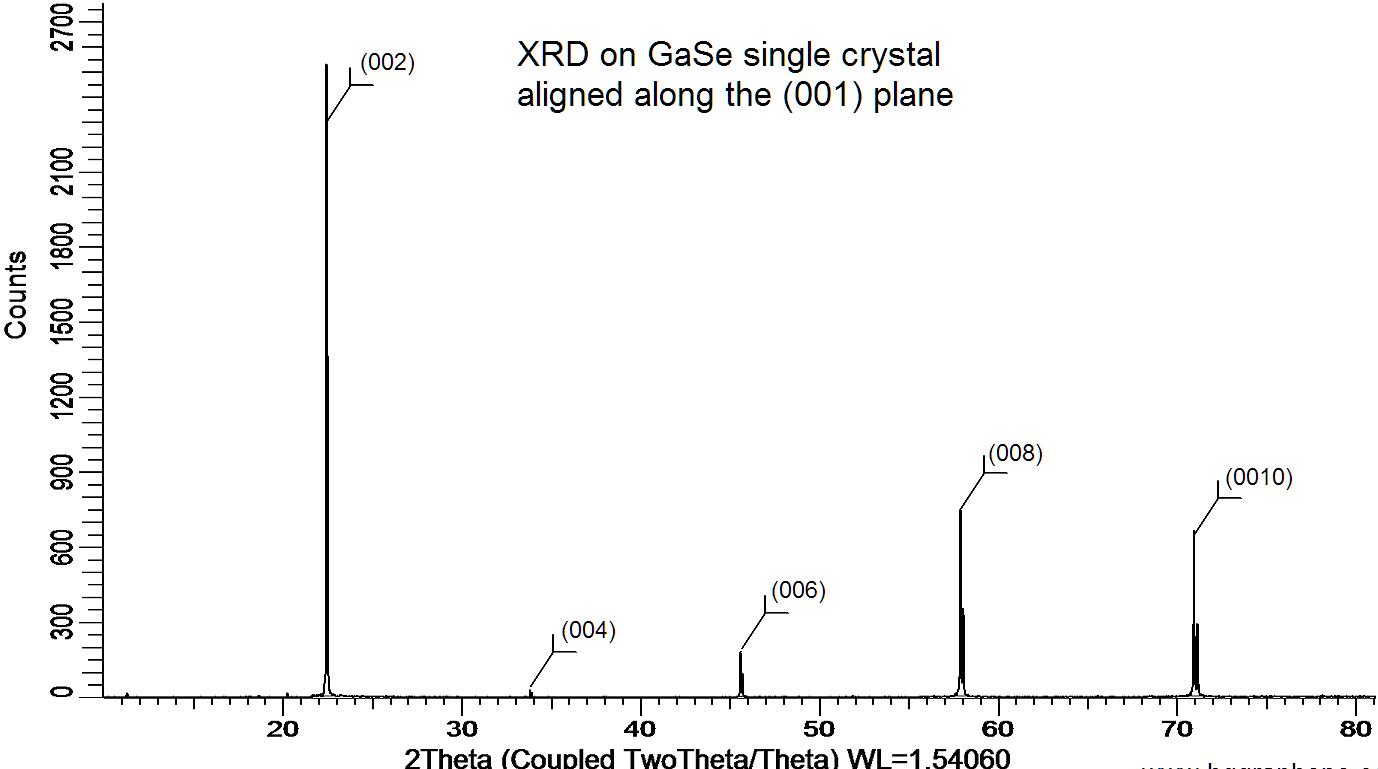 Powder X-ray diffraction (XRD) of a single crystal GaSe. X-ray diffraction was performed at room temperature using a D8 Venture Bruker.