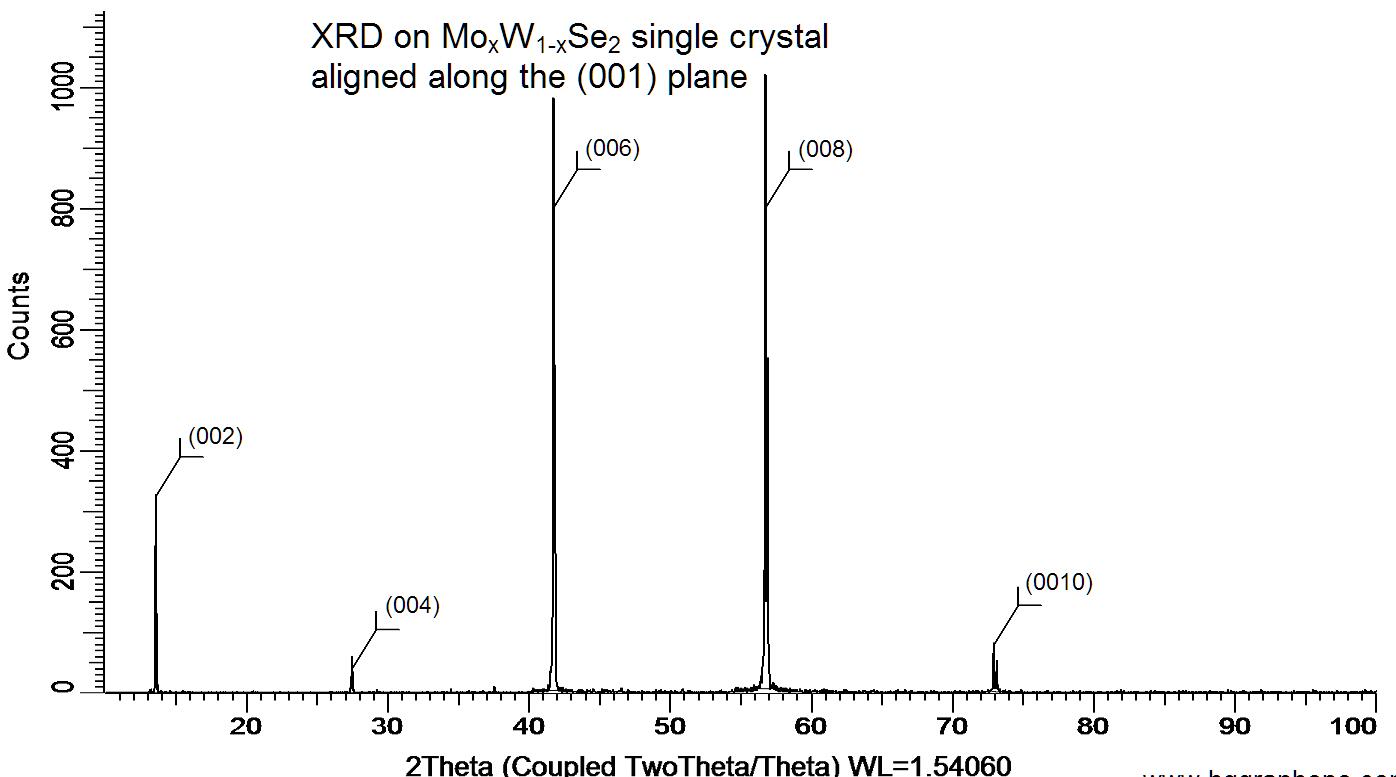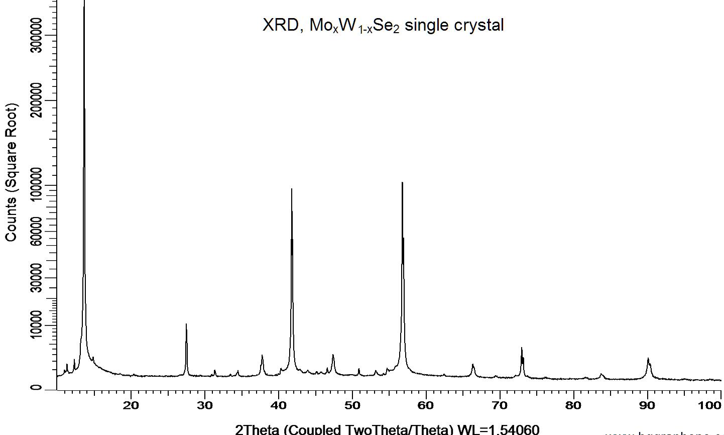 Powder X-ray diffraction (XRD) of a single crystal MoWSe2. X-ray diffraction was performed at room temperature using a D8 Venture Bruker.