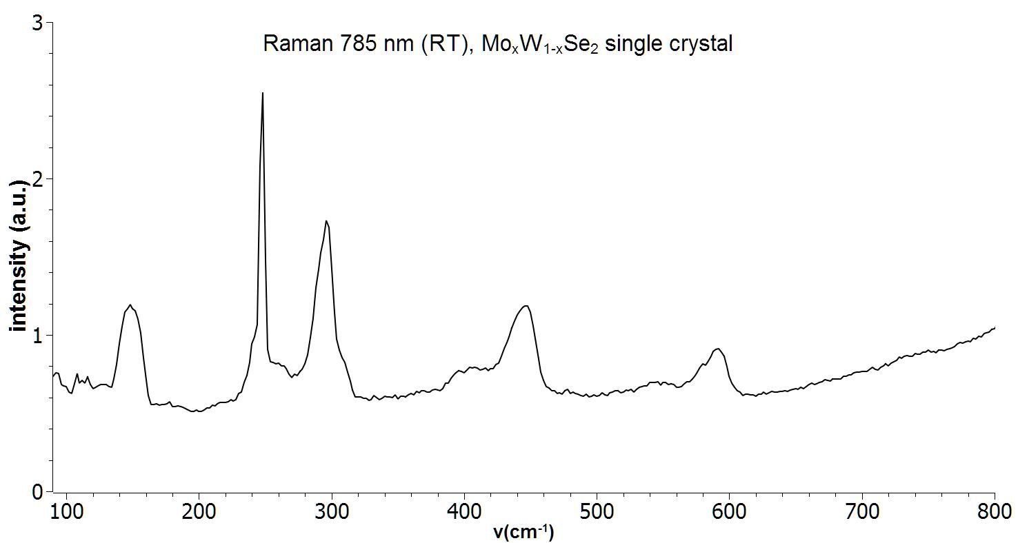 Raman spectrum of a single crystal MoWSe2. Measurement was performed with a 785 nm Raman system at room temperature.