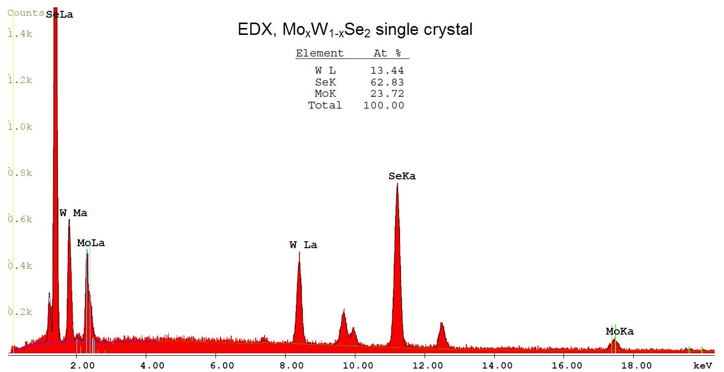 Stoichiometric analysis of a single crystal MoWSe2 by Energy-dispersive X-ray spectroscopy (EDX).