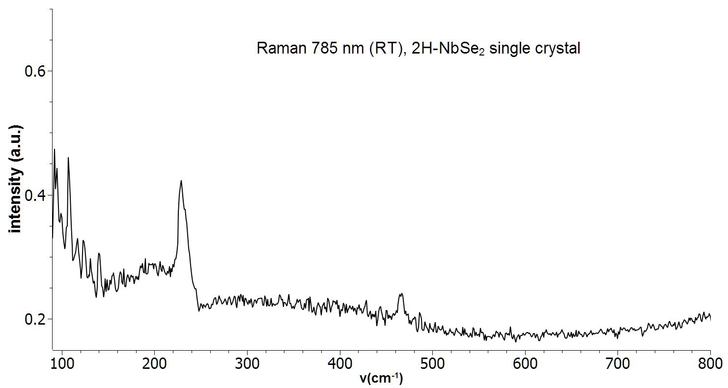 Raman spectrum of a single crystal 2H NbSe2. Measurement was performed with a 785 nm Raman system at room temperature.