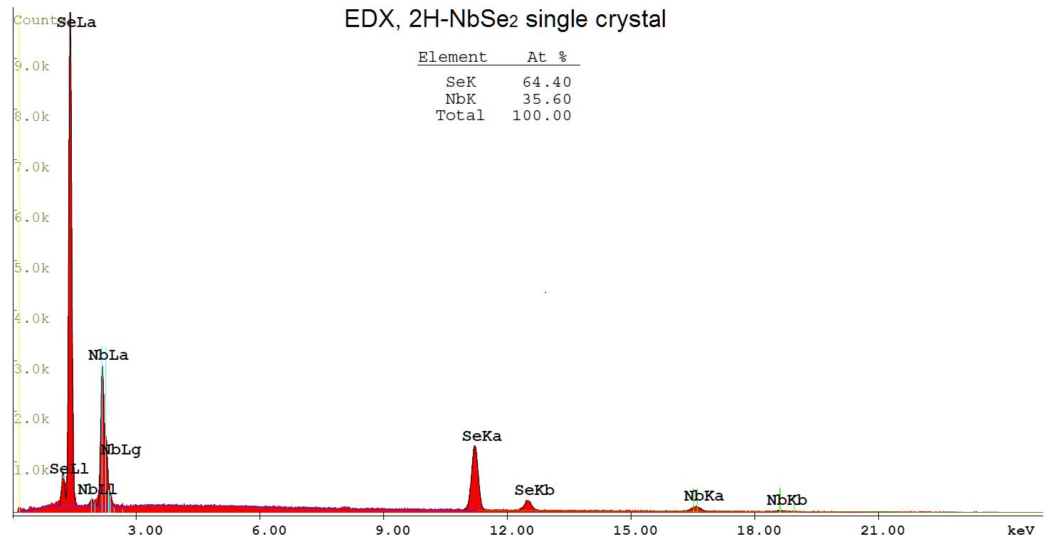 Stoichiometric analysis of a single crystal 2H NbSe2 by Energy-dispersive X-ray spectroscopy (EDX).