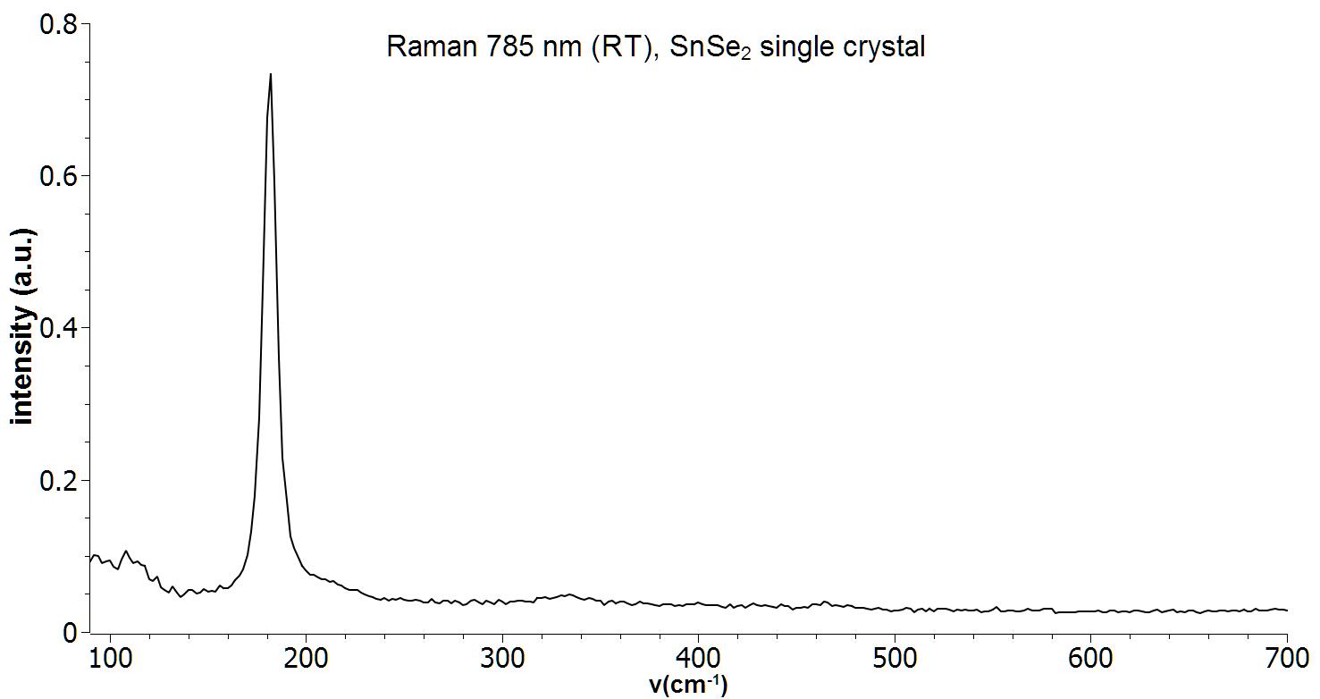 Raman spectrum of a single crystal SnSe2. Measurement was performed with a 785 nm Raman system at room temperature.