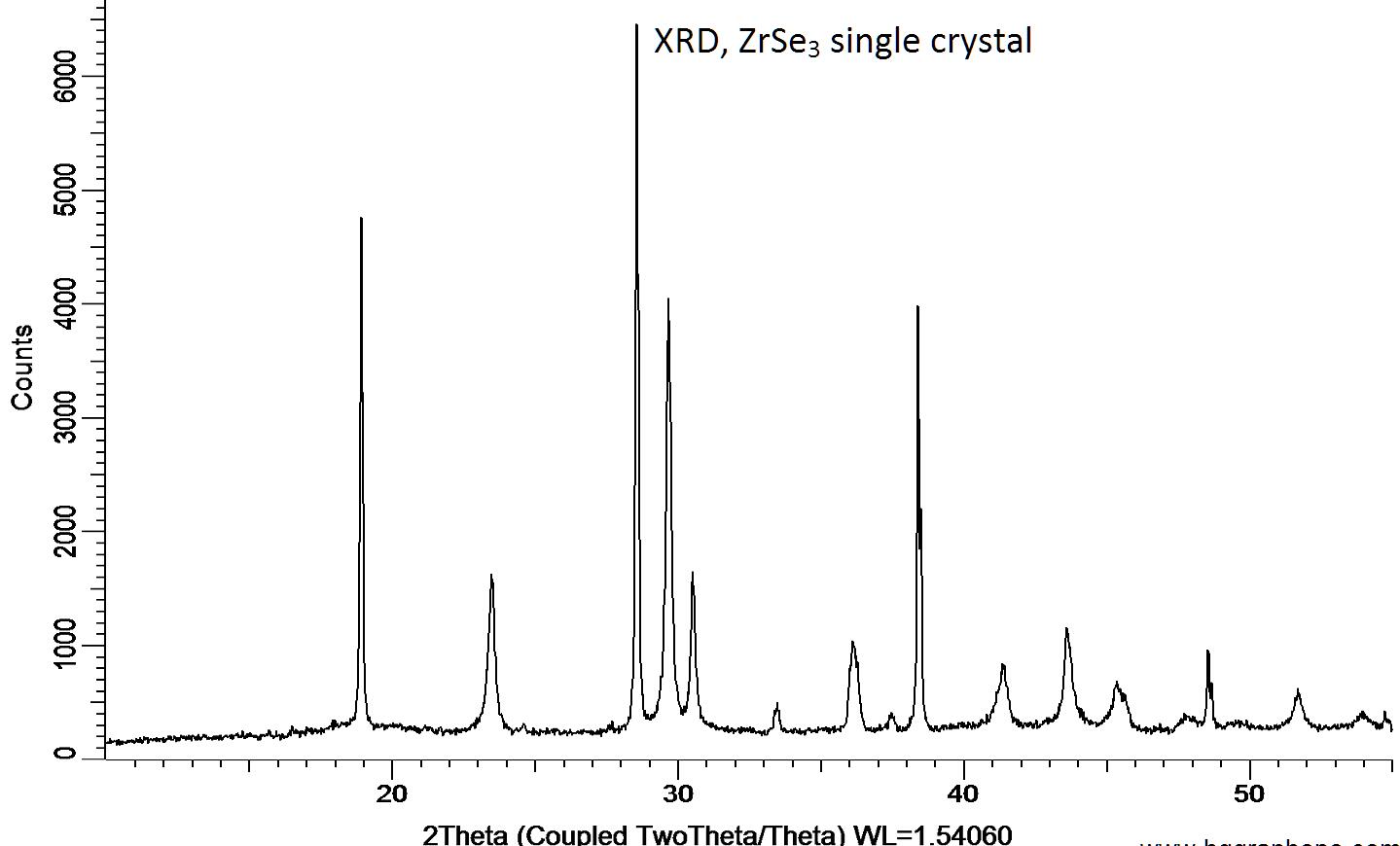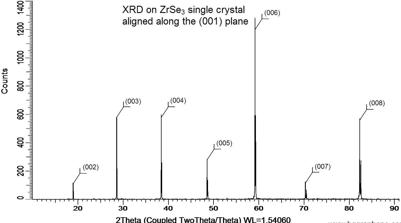 Powder X-ray diffraction (XRD) of a single crystal ZrSe3. X-ray diffraction was performed at room temperature using a D8 Venture Bruker.