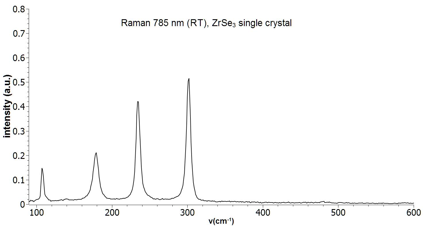 Raman spectrum of a single crystal ZrSe3. Measurement was performed with a 785 nm Raman system at room temperature.