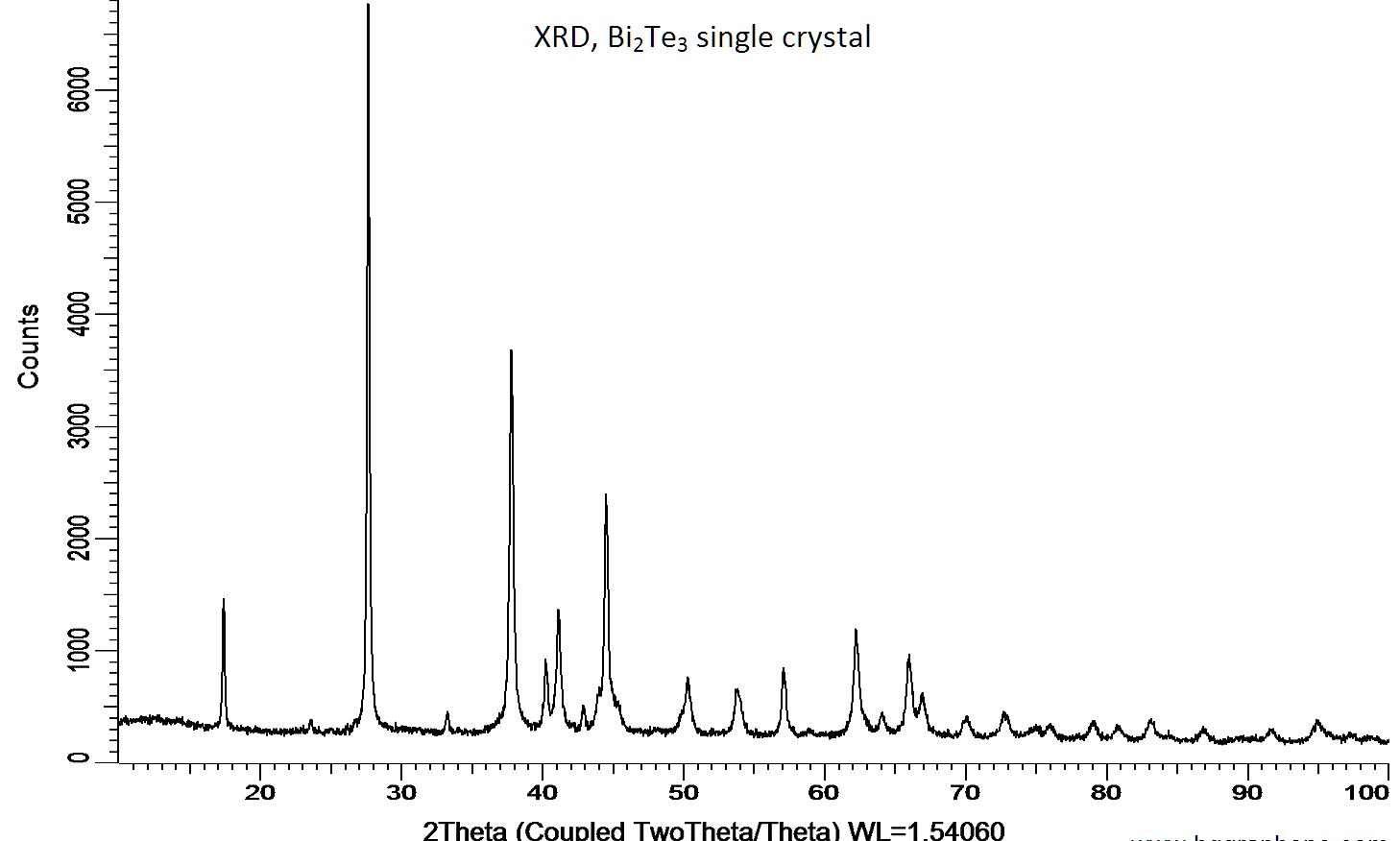 XRD of a single crystal Bi2Te3. X-ray diffraction was performed at room temperature using a D8 Venture Bruker.