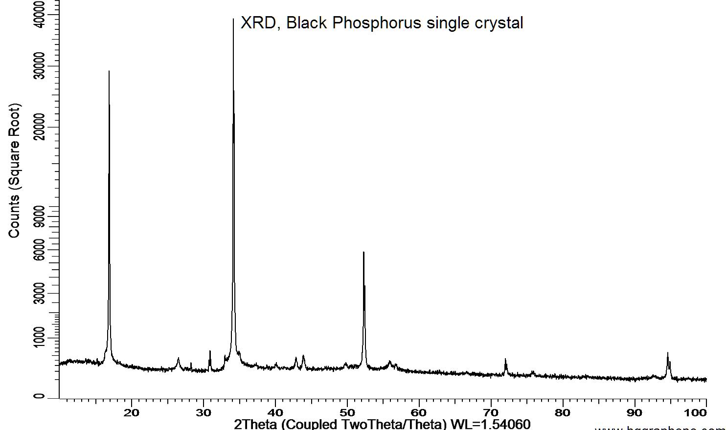 Powder X-ray diffraction (XRD) of a single crystal black phosphorus. X-ray diffraction was performed at room temperature using a D8 Venture Bruker.