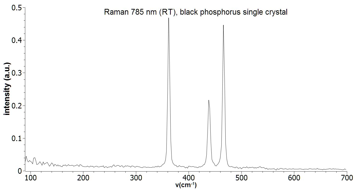 Raman spectrum of a single crystal black phosphorus. Measurement was performed with a 785nm Raman system at room temperature.