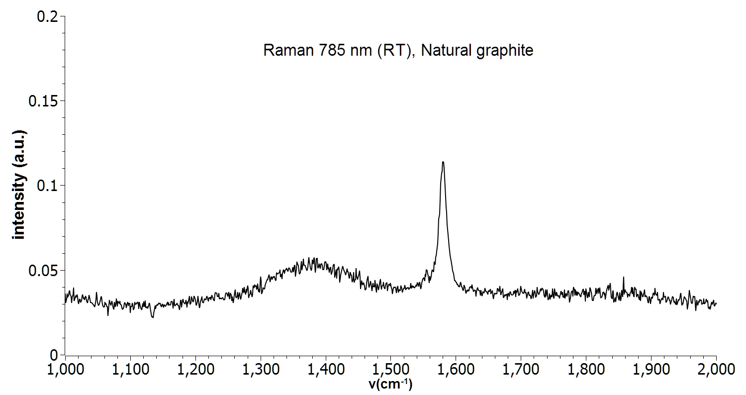 Raman spectrum of a single crystal natural graphite. Measurement was performed with a 785 nm Raman system at room temperature.