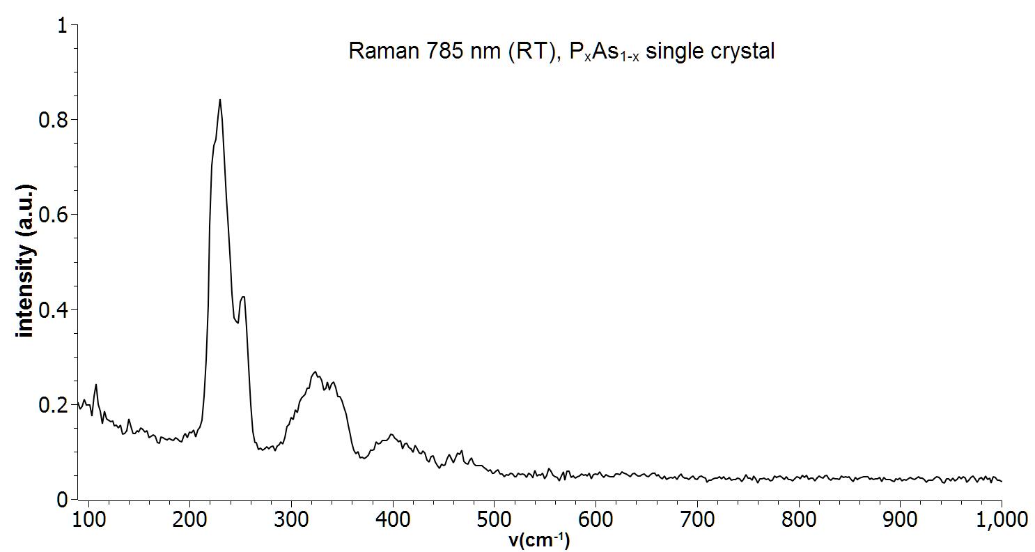 Raman spectrum of a single crystal P-As. Measurement was performed with a 785 nm Raman system at room temperature.