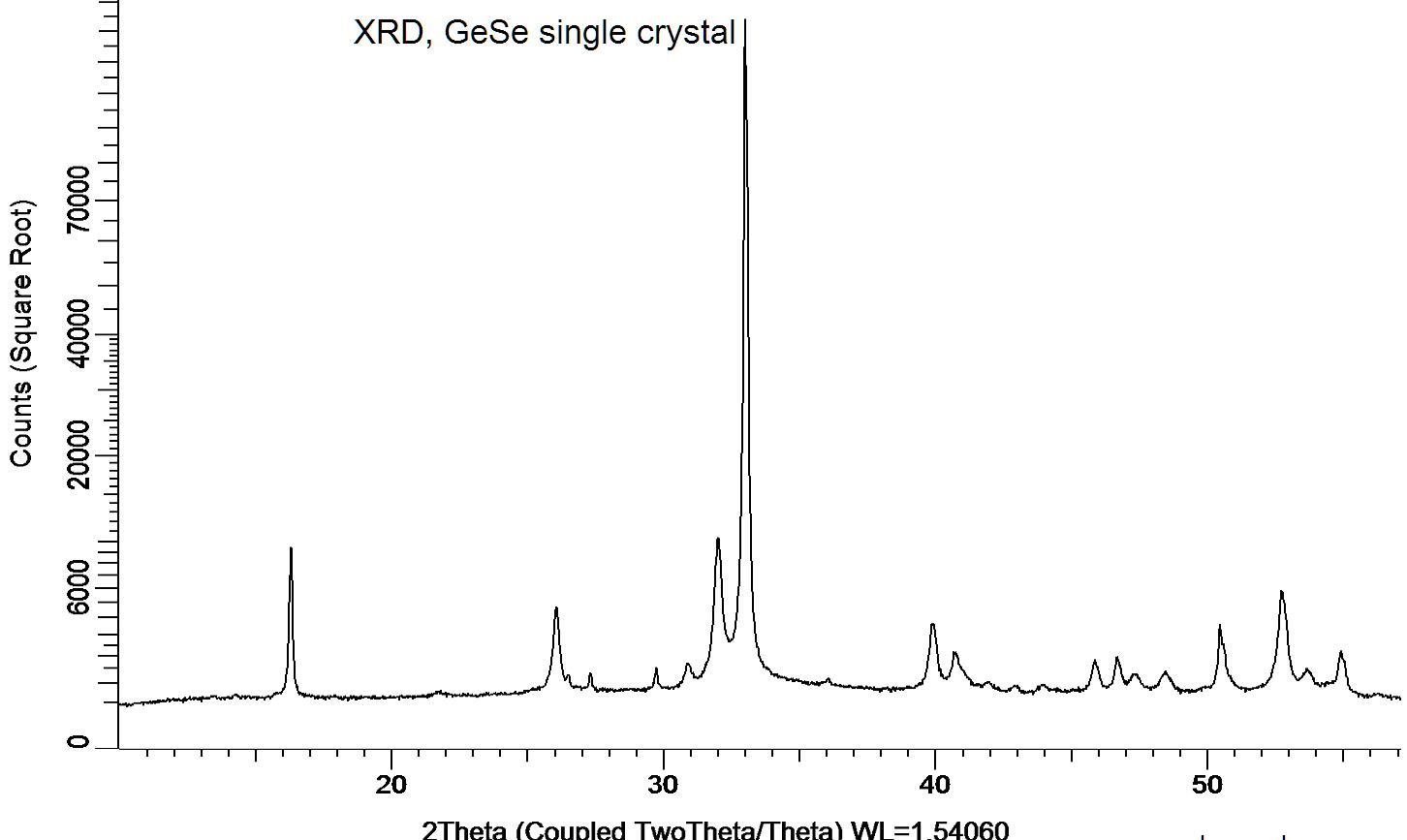 Powder X-ray diffraction (XRD) of a single crystal GeSe. X-ray diffraction was performed at room temperature using a D8 Venture Bruker.