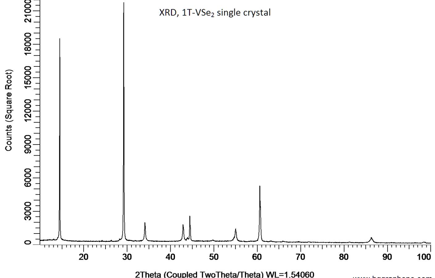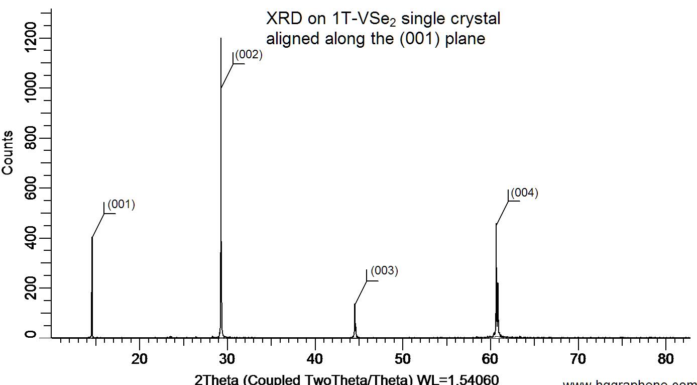 Powder X-ray diffraction (XRD) of a single crystal VSe2. X-ray diffraction was performed at room temperature using a D8 Venture Bruker.