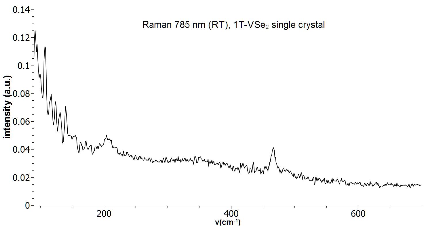 Raman spectrum of a single crystal VSe2. Measurement was performed with a 785 nm Raman system at room temperature.