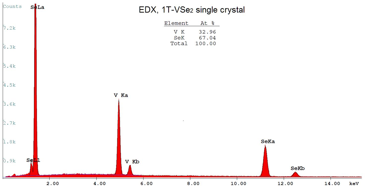 Stoichiometric analysis of a single crystal VSe2 by Energy-dispersive X-ray spectroscopy (EDX).