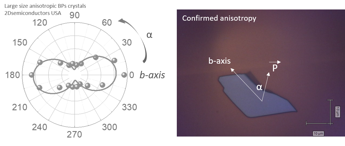 We offer most economic, massive size (1.0 gram), and highly crystalline scientific grade black phosphorus (BPs) crystals. Black phosphorus is an infrared (IR) semiconductor with a band gap of 0.3 eV in bulk which becomes ~1 eV when isolated down to monolayer (phosphorene). Our crystals are grown using special techniques (see below) in order to attain high crystalline anisotropy, minimal crystal defect density in the range of a record 3E9 - 1E10 cm-2 values, and high electronic / optical anisotropy. Thus, our crystals come ready for exfoliation with guaranteed crystalline, optical, and electronic anisotropy. Crystals are packaged under argon and is tightly seal to retain intrinsic properties of BPs crystals.