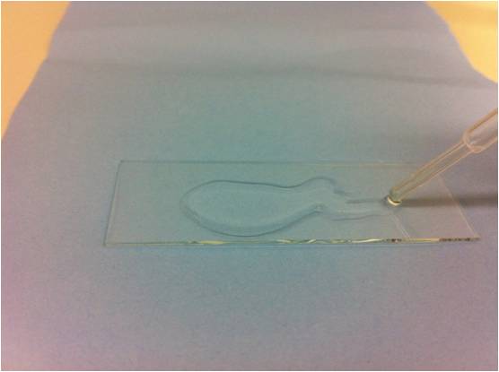 你可以用移液管移动玻璃片上的聚合物,也可以使用重力移动玻璃片上的水滴