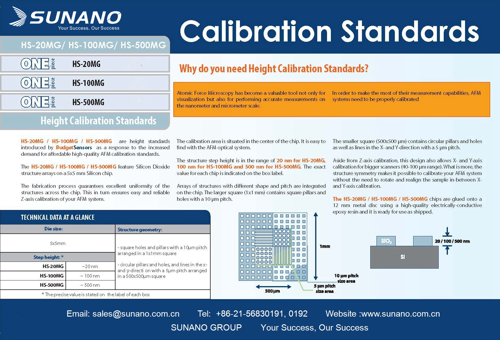 HS-20MG / HS-100MG / HS-500MG作为budgetsensors 高度标准介绍作为增加相应,能负担原子力显微镜的高品质校准标准需求。