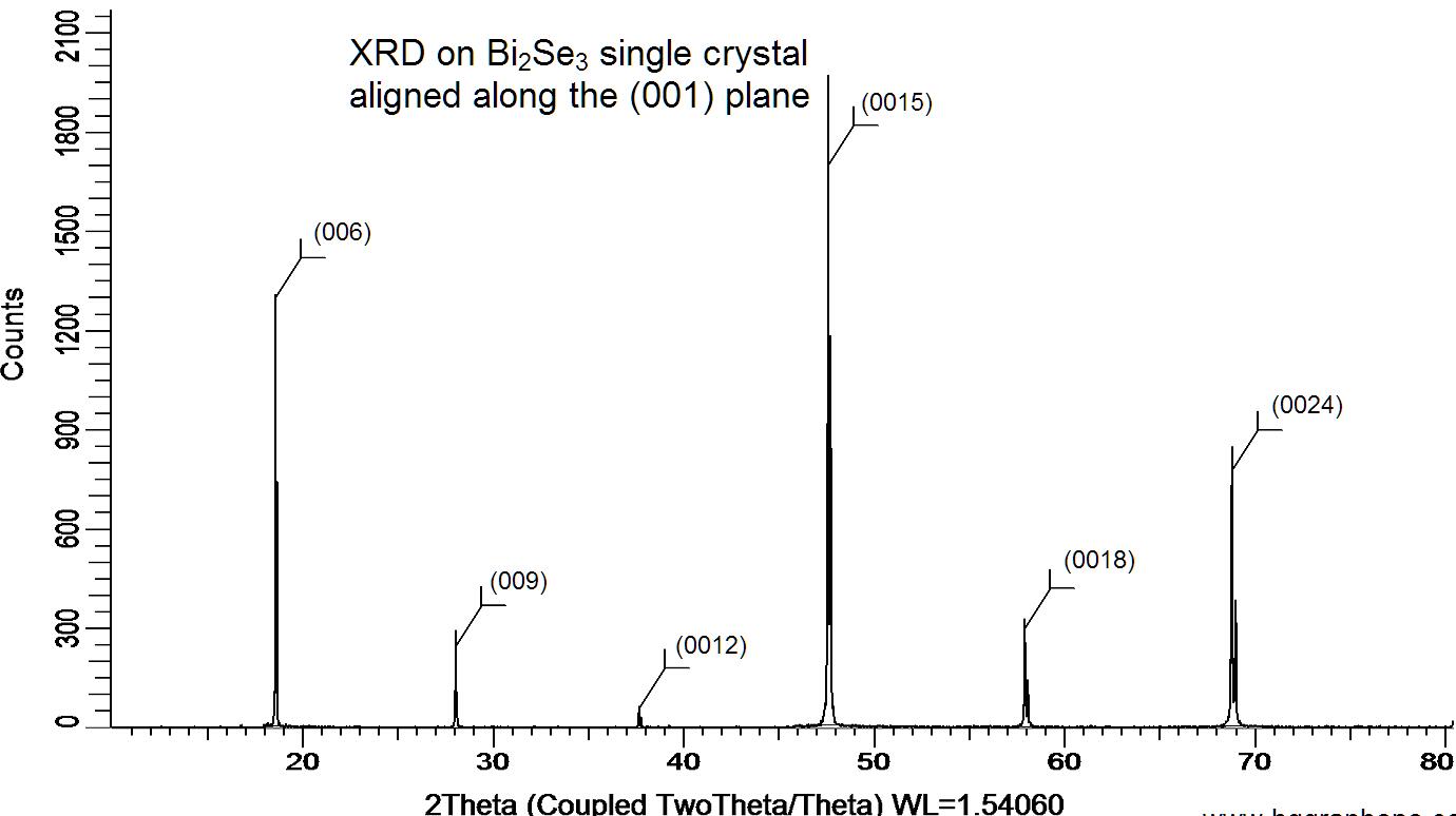 XRD of a single crystal Bi2Se3. X-ray diffraction was performed at room temperature using a D8 Venture Bruker.