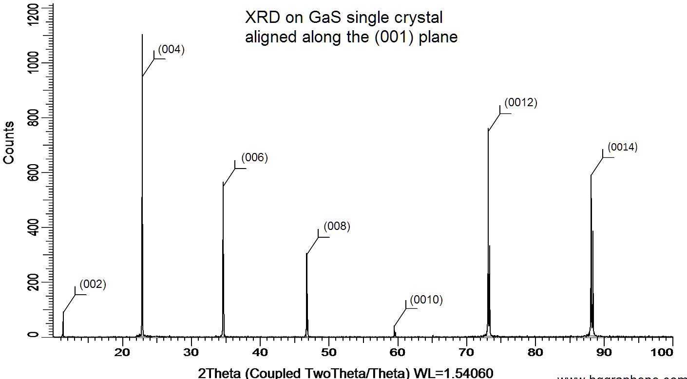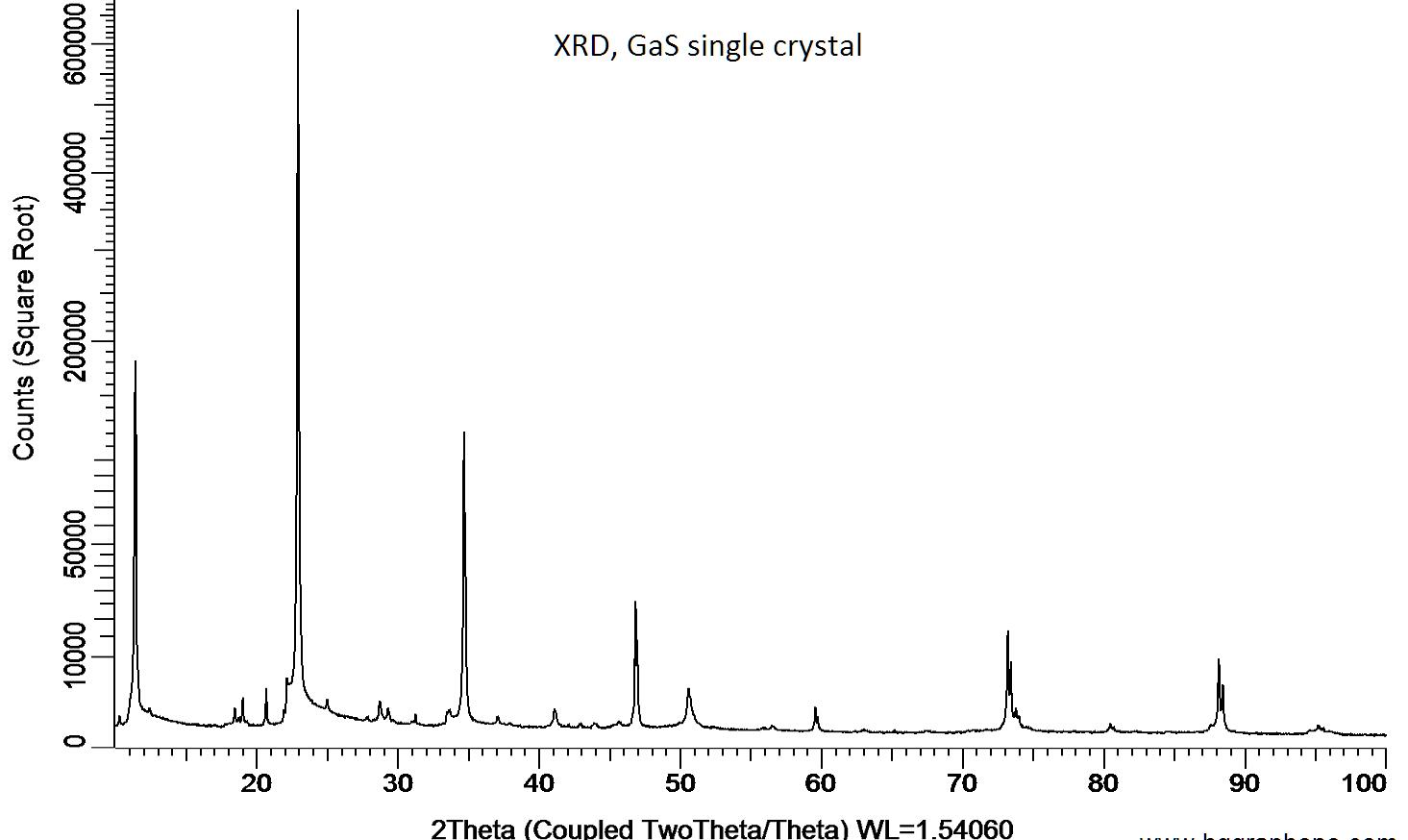 Powder X-ray diffraction (XRD) of a single crystal GaS. X-ray diffraction was performed at room temperature using a D8 Venture Bruker.
