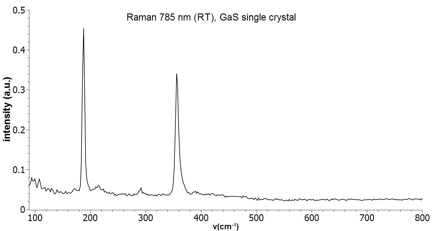 Raman spectrum of a single crystal GaS. Measurement was performed with a 785 nm Raman system at room temperature.